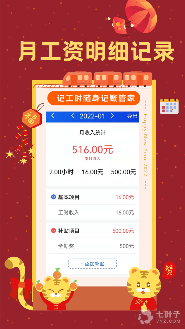 补贴扣款记录 - 小时工时记录最新版支持补扣记录,让各项奖罚一清二楚。