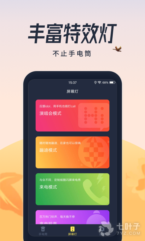 1、在一些排队或者是演出现场,需要一些闪光灯来营造氛围,大家可以试试这款非常好用的超亮闪光灯APP,这款软件中有多种颜色的灯光效果提供给大家,用户可以根据自己的需求来自由选择,还可以自定义灯光的强度哦