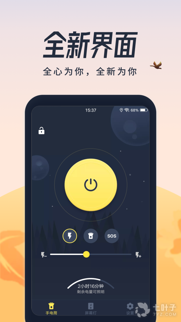 2、超亮闪光灯App是实用的照明工具,可以将手机闪光灯亮度扩大到极限,为你照亮前进的道路,不论是夜间行驶还是半夜起床都提供了极大的便利,还可以用作闪灯、彩灯、紫外线手电、LED灯,功能齐全,是不平凡的照明工具
