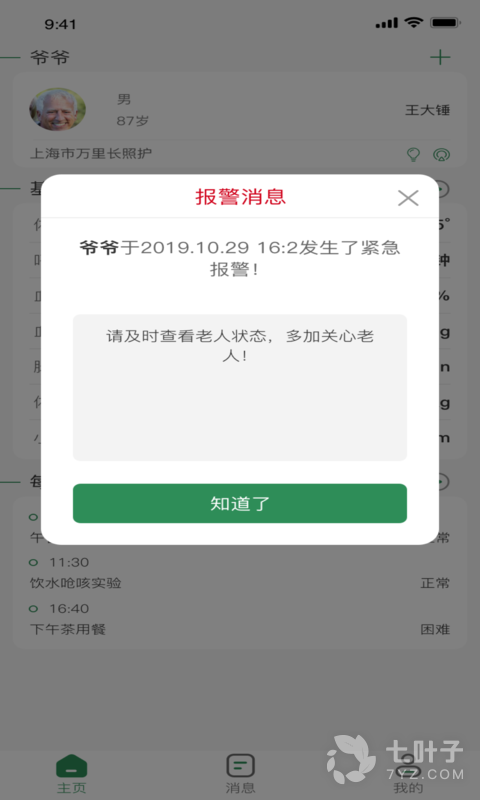 3、照护老人的软件.在爱照护最新版上你可以远程看到老人的实时情况,让你在外出时也可以对老人的身体情况了如指掌,如果出事了.还可以紧急呼叫附近的诊疗机构,去紧急处理