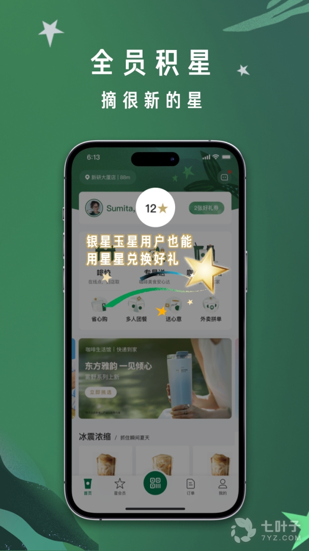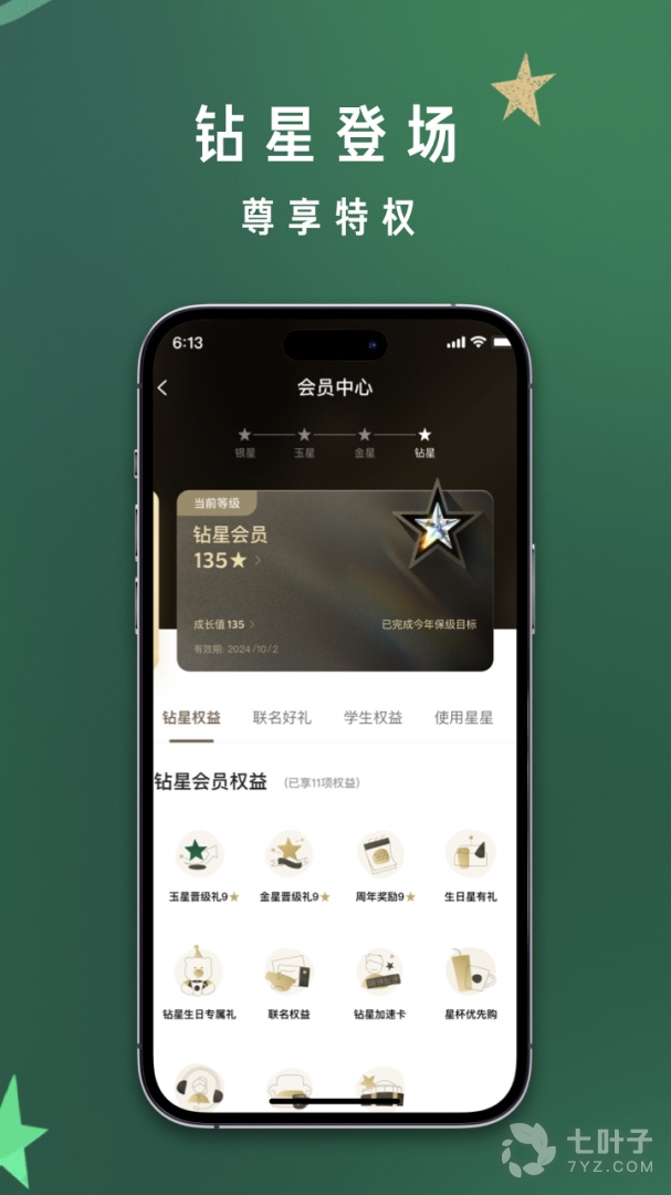 6、星享俱乐部绑定星享卡与手机应用,随时查看您的星享等级、星星数量,以及星享好礼