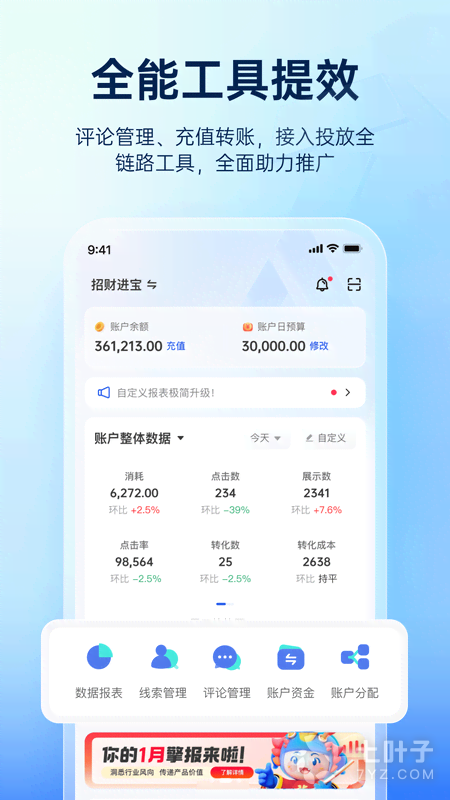1. 数据报表:便捷查看广告、账户各项实时数据及历史数据,掌握最新投放效果;
