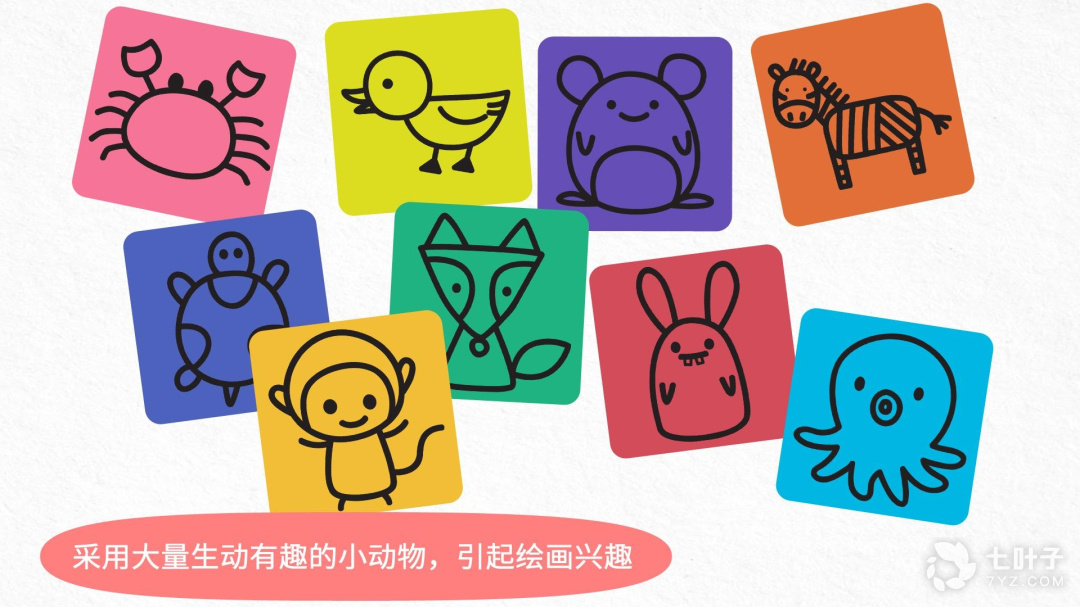 1、专为2-7岁儿童设计的绘画学习应用。根据创新的教学理念开发,打破传统绘画教学模式,通过趣味简笔画的形式分步骤教学让孩子在游戏中边玩边学,做家长的好帮手