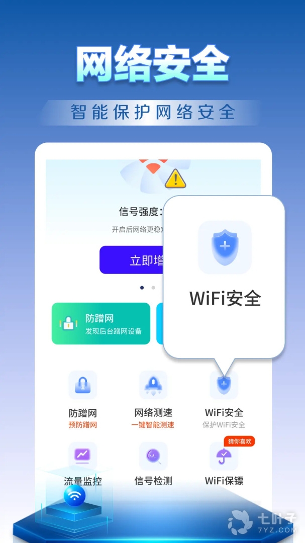 3、会对用户连接的WIFI网络进行安全性检查,如果检测出网络存在风险,会弹出警告提醒用户。