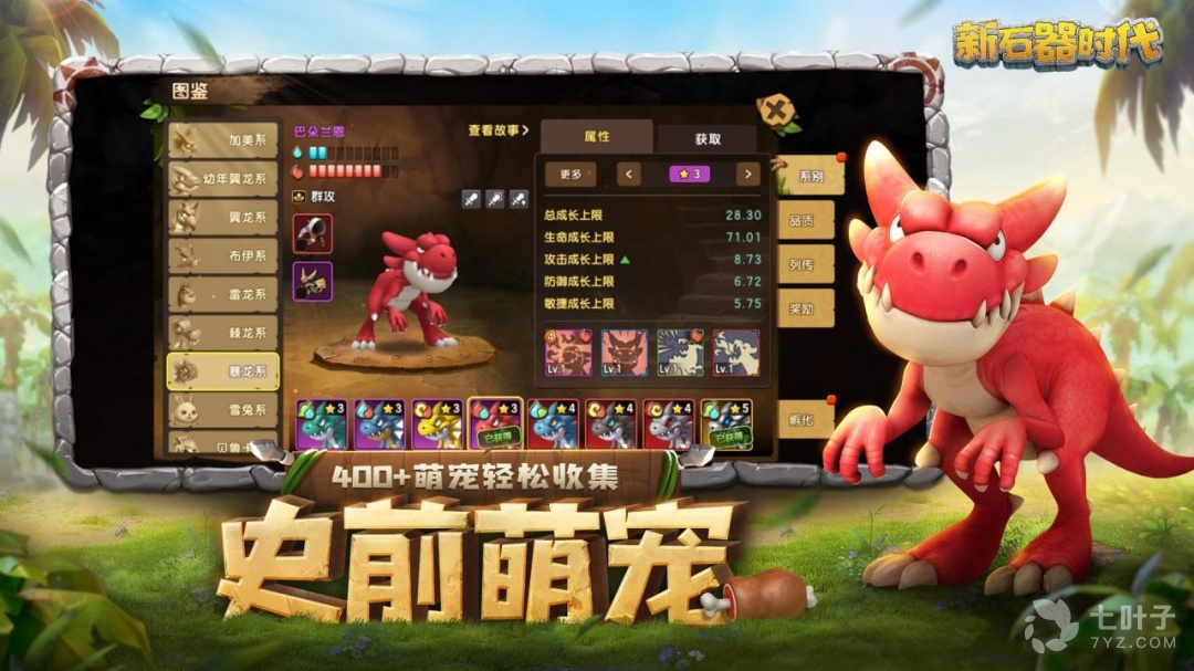 新石器时代是一个mmo回合冒险战斗游戏。使用3d画质重现史前石器家园,孵蛋捕捉多途径收集养成,开放式养成自由搭配,400萌宠,力求给玩家在重温经典的同时带来全新的冒险体验。