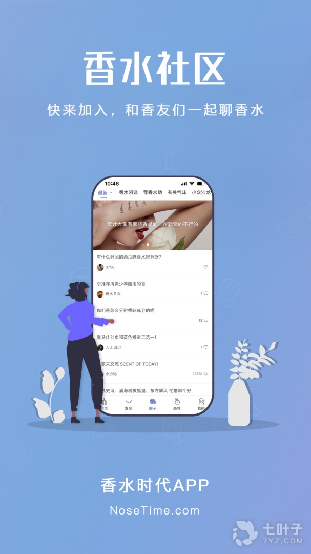 3、《香水时代》App是为香水爱好者所打造的交流社区,这里拥有最全面的百科知识,可在社区中浏览其他用户发表的动态,可以与其一起交流探讨,相关于香水的一切都可以在这里找到答案,并且还可以查询真实的使用测评,也是新手入门的宝典