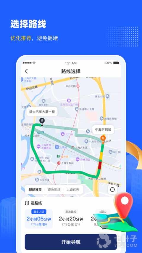 3、支持选择导航路线,根据需求选择导航路线