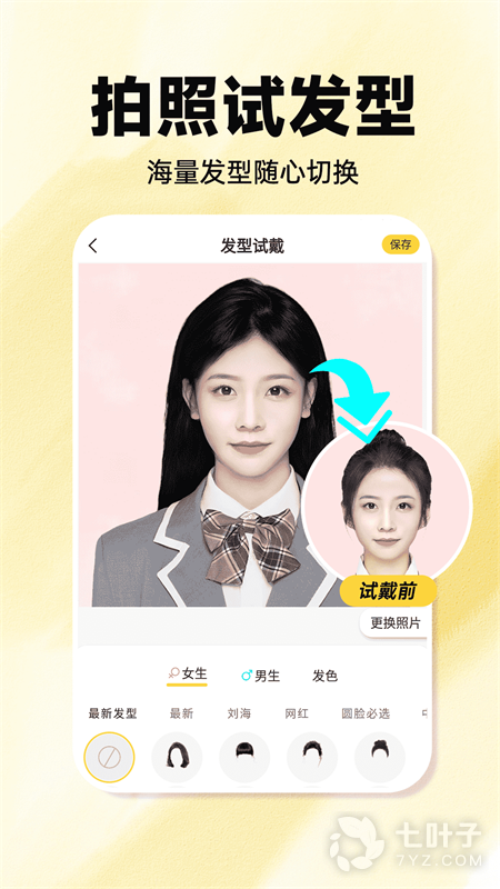 涵盖了多种发型模板素材,一键测试,支持自由选择发型,也能为你设计适合你的,多种模式,任你选择拍摄体验哦。