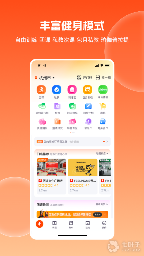 3、团课页面全面更新,可快速约到离你最近门店的可约课程,同时为你匹配更适合你自己的课程。