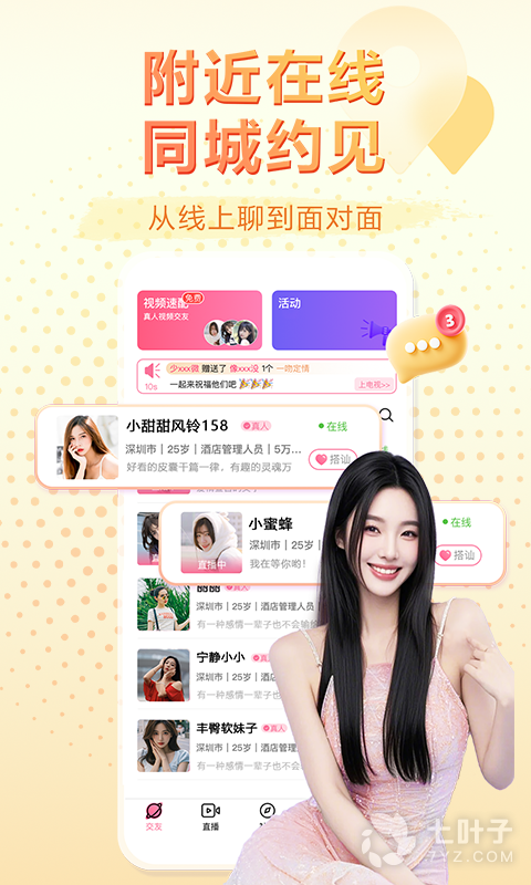 在牵守,你可以通过文字、语音、视频通话、短视频等多种方式与同城附近异性聊天互动。