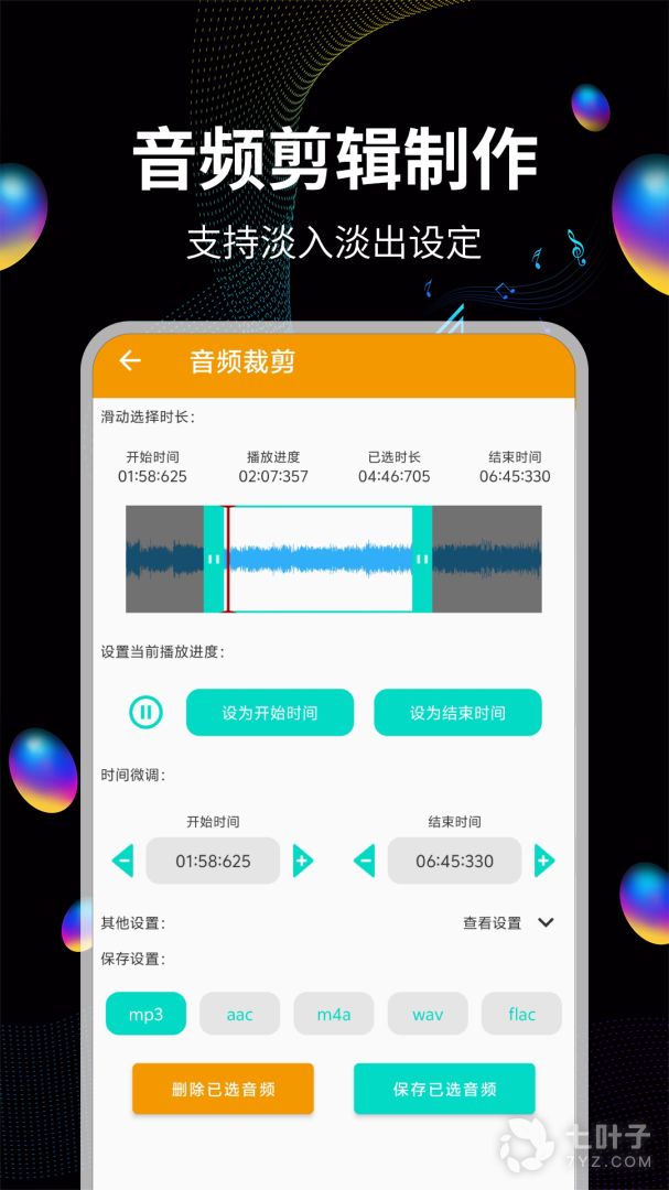 1、音频剪辑制作,支持淡入淡出设定