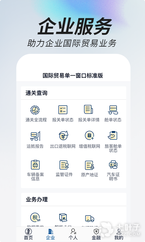 进入业务办理中心,分类查看带来的国际贸易办理服务
