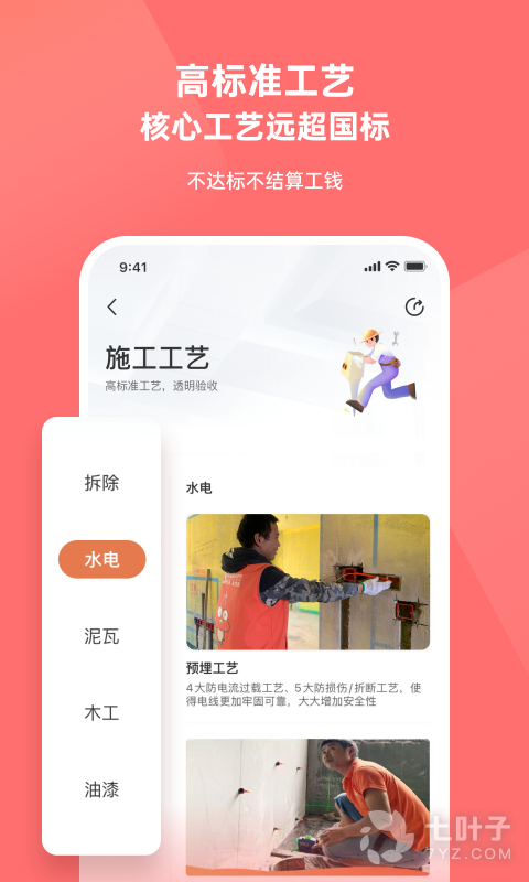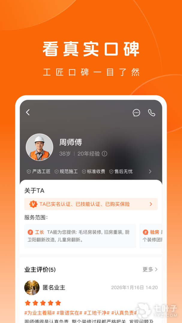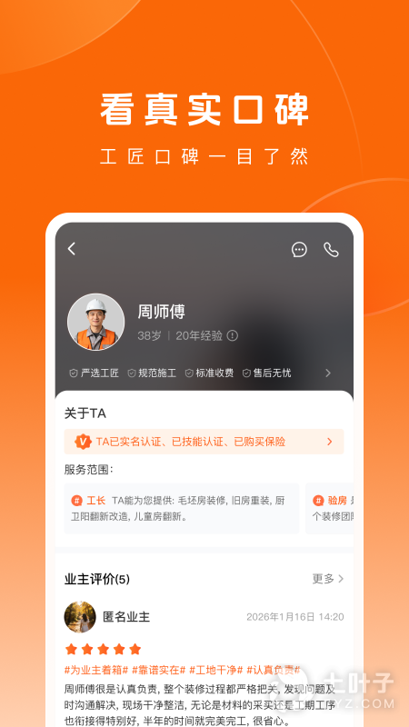 1、业主端首页有"施工中,查看详情"工匠会上传工地的实时情况,您可以慵懒的躺在沙发上看现场若工作完成,工匠会发起完工申请,监理首先审核,审核通过后业主审核,层层把关,让装修质量更有保障