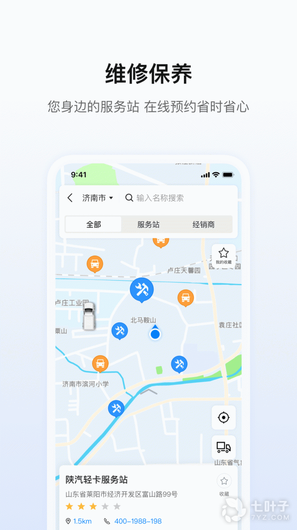 3、服务网点查询与预约: 用户可以查看附近的营业服务网点,并进行维保预约
