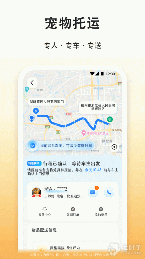 3、除了提供顺风车服务之外还有打车、送宠物、急件等三个功能;