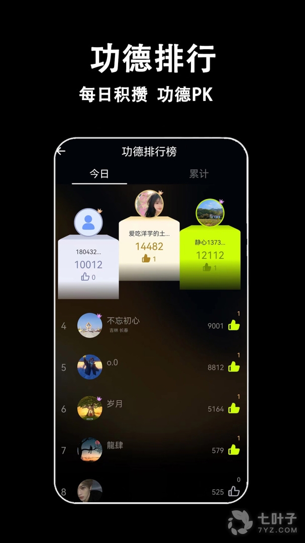 指尖木鱼是一款能够随时进行拜佛上香的工具,每天自己的功能数量都会增加并生成报告,同时还能看到很多其他用户对于功德方面的累计,查看详细的排行榜,这样才能激励自己增加更多的功德,不仅如此,还可以念佛珠,根据自己的阅读频率进行调整,这些佛珠都会自己进行滚动,同时还能调整一下背景音乐,让自己念佛珠和敲木鱼的时候更加专心,每天积攒自己的功德,可以让心情变得更加平静。