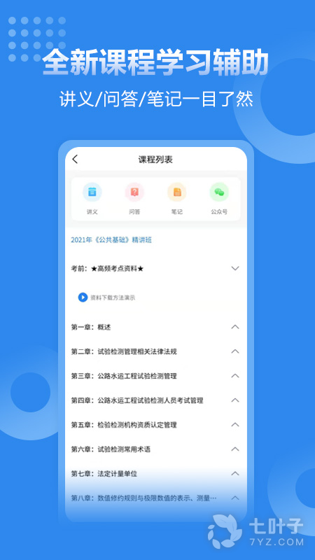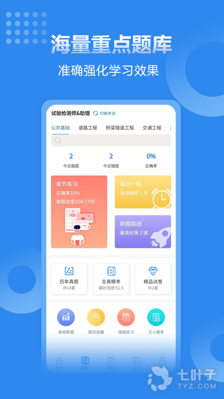 6、主要功能有章节练习、历年真题、全真模考、学习资料、考前高频数据、考前精品试卷