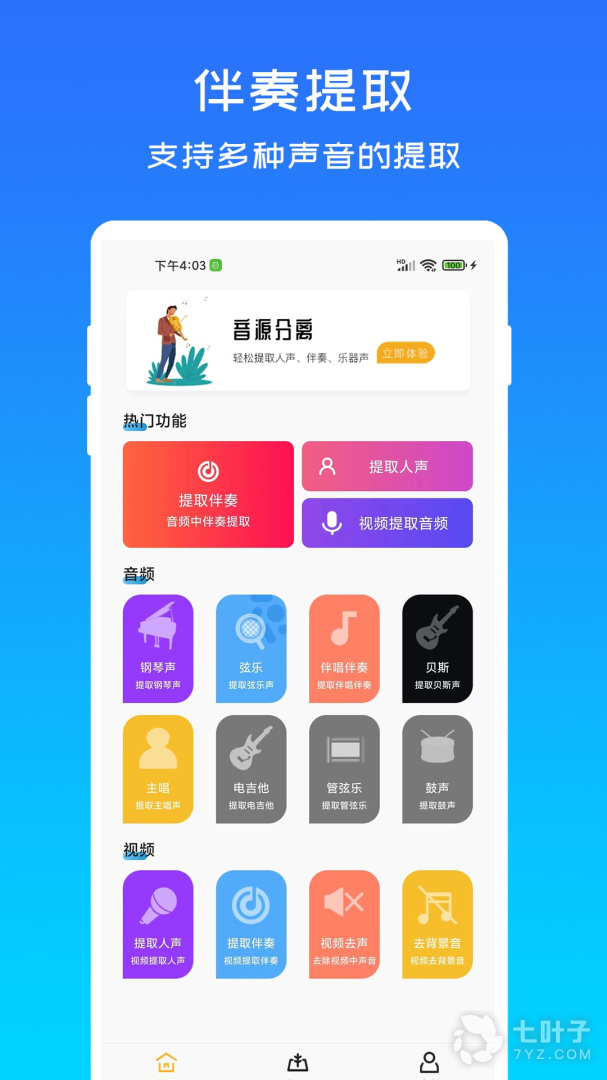 2、音源分离是好用的人声提取器,它可以帮助用户从复杂的音频中提取单独的人声,还可以从音乐文件中提取出人声、伴奏,提取出来的音频会单独保存,不会对原文件产生影响。无需花费过多的时间学习操作技巧,该软件使用起来非常容易上手,常用于音频剪辑、采样等领域