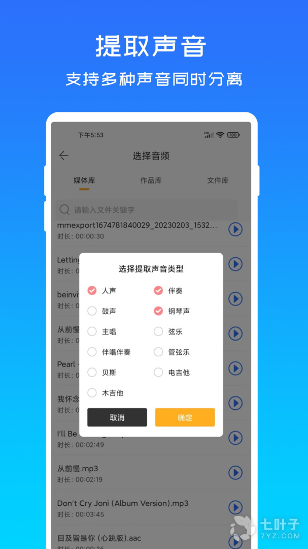 音频提取人声\伴奏\钢琴声\弦乐\贝斯主唱\电吉他\管弦乐彭声