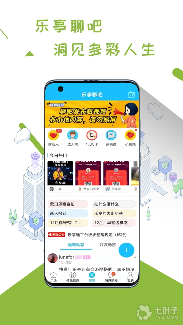 1、乐亭通是乐亭通本,安装包小巧,为用户提供乐亭周边最新资讯,集合了衣食住行、吃喝玩乐各个方面,支持和同城交友,特色论坛,掌握全城大小事,还有便民生活服务