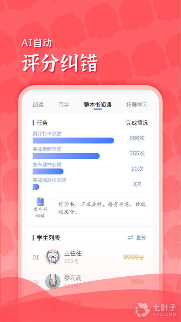 【AI自动纠错评分】AI大数据即时评测打分;自动生成成绩报告和易错生字