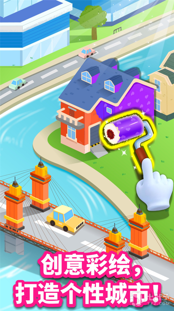 抗震建筑建好啦!用彩色的瓦片和油漆来装饰它们吧!快看,城市变得更美了呢!