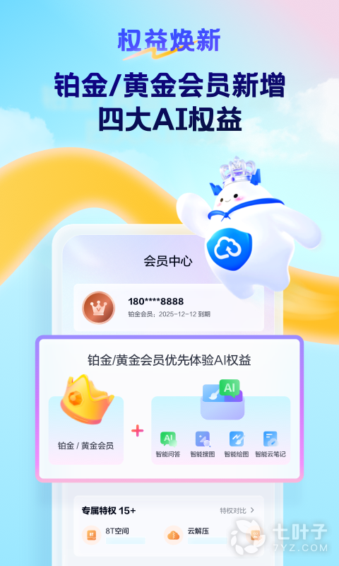 2、天翼云盘,下载后登录即是白金会员,上传下载资源不限速,空间无限扩容,还可享受视频极速播放通道,资源下载边看边下,更加轻松