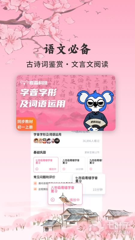2、该软件涵盖了初中三年所有的语文知识内容,在这里大家可以随时随地进行语文的学习,支持课前预习、课后复习,以及还有着各种课后习题供大家进行练习,以此来帮助大家更好的提升自己的语文成绩