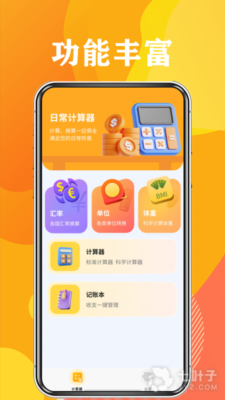 日常计算器软件是一个简单方便的计算器工具,集计算器、进制转换、科学计算器、个税五险一金计算、房贷计算器、体重计算器、大写金额转换、单位换算等为一体,方便好用,功能强大,简单解决各种计算、换算的超级计算器。