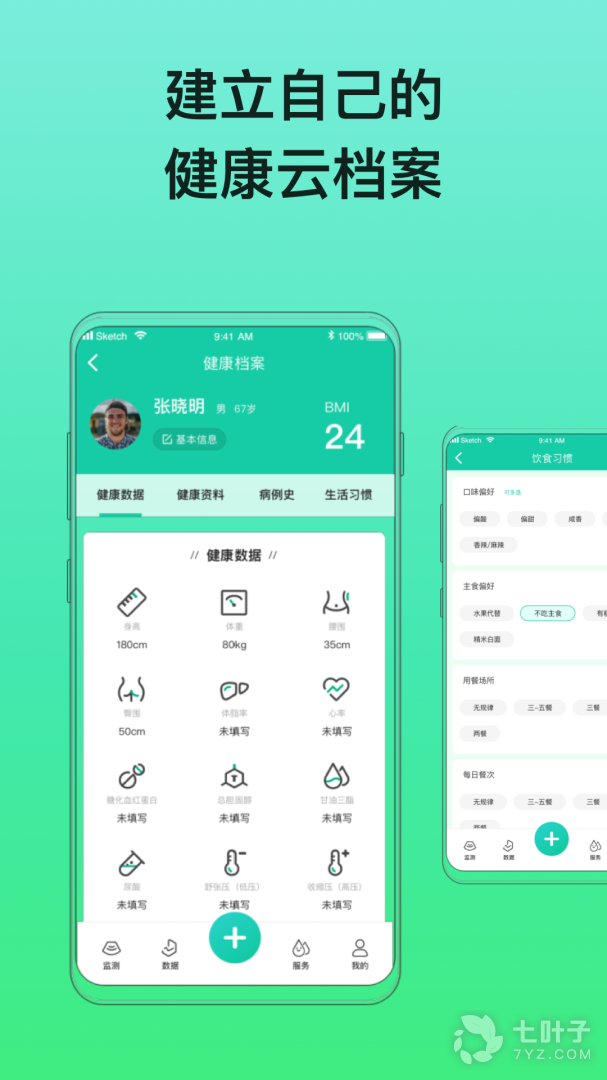 2、全方位记录和存储糖尿病患者的饮食、运动、用药、心率、血压、血糖等数据