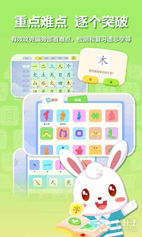2、兔小贝识字是一面免费给力的幼儿学习早教软件,兔小贝识字汇聚了精选的优质教学素材和儿童绘本,通过兔小贝识字软件助力孩子认识更多的汉字
