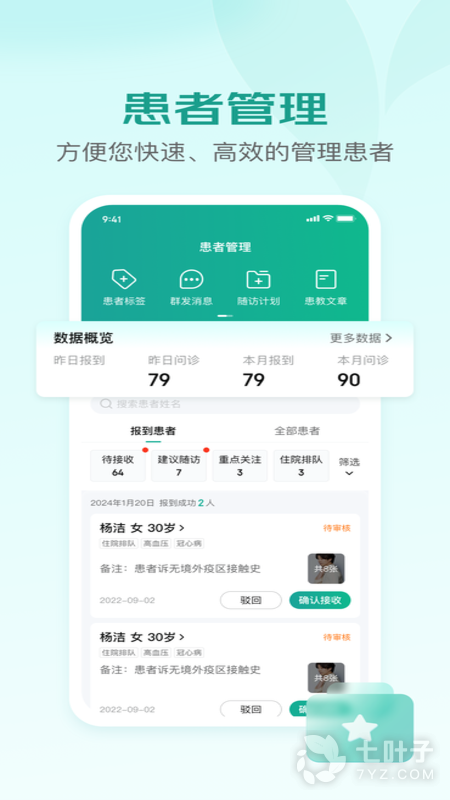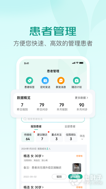 医生可标记重要患者以及为患者添备注信息,可随时查看已接诊患者的档案和历史就诊记录,便于对患者继续拿给你记录和追踪。