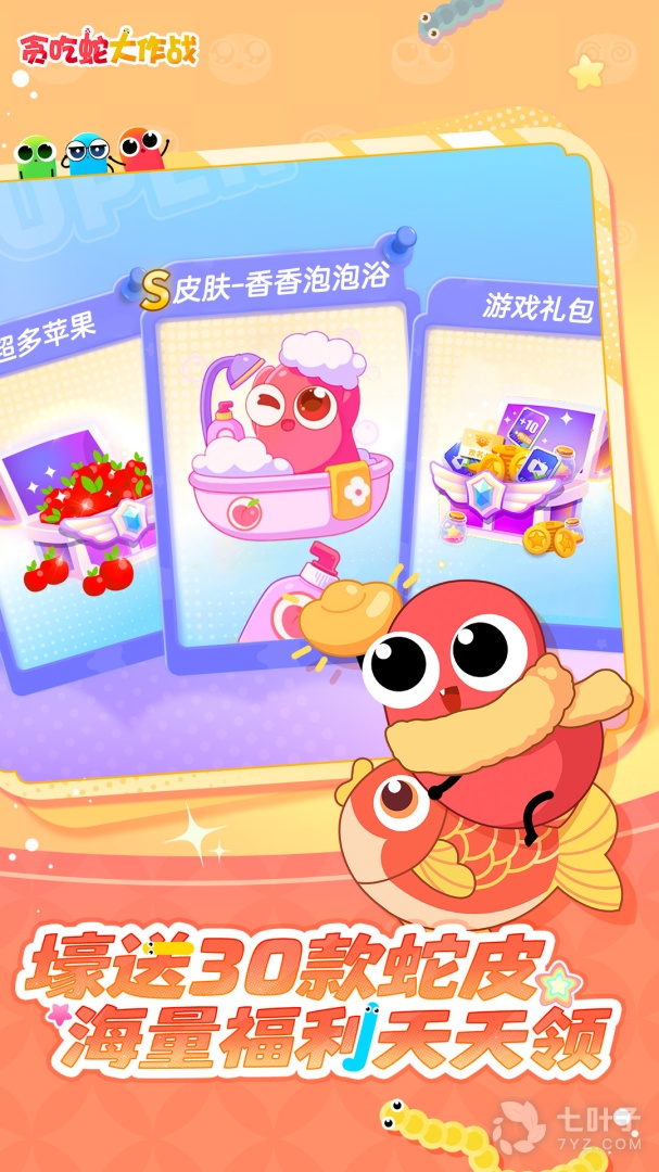 3、《贪吃蛇大作战4.4.9版》是一款玩法超有趣的冒险竞技手游!这一次咱们将会置身于一座满是蛇蛇的卡通世界中,你的目的就是要让自己成为众多蛇蛇中的霸主,超多不同特色的玩法模式等你来挑战,更有诸多玩法内容等你欣赏,想知晓更多内容的话就请下载吧