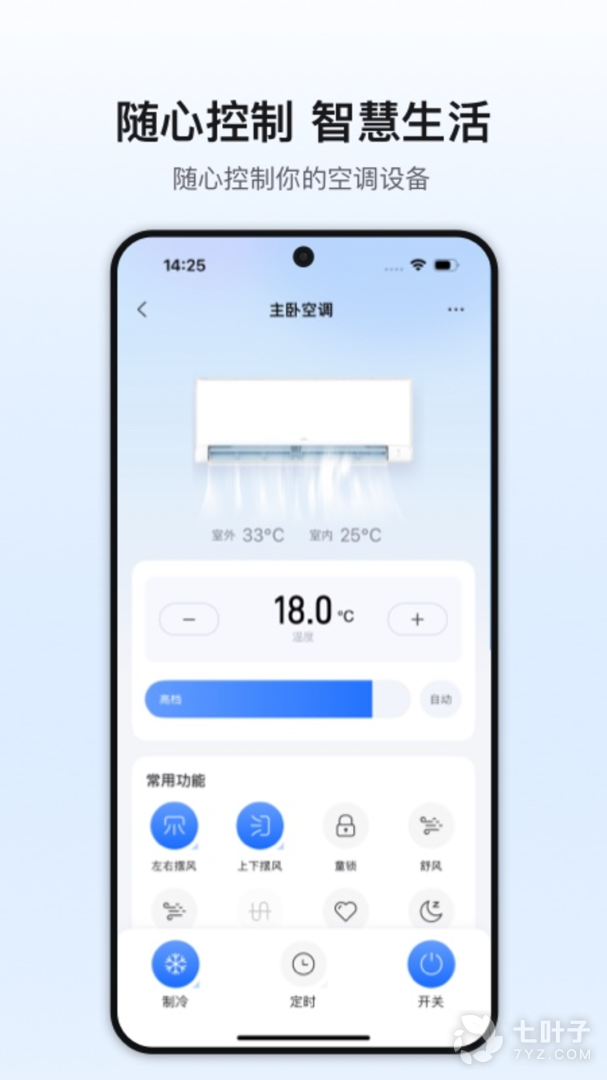 3、内置各种独特的使用条件,让你通过手机app即可控制空调,让你在回家前就可以让空调充满冷气,使用更加智能化