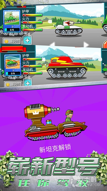 1、玩家可以选择更多酷炫的坦克装备,最新的高级坦克可以升级解锁并享受体验