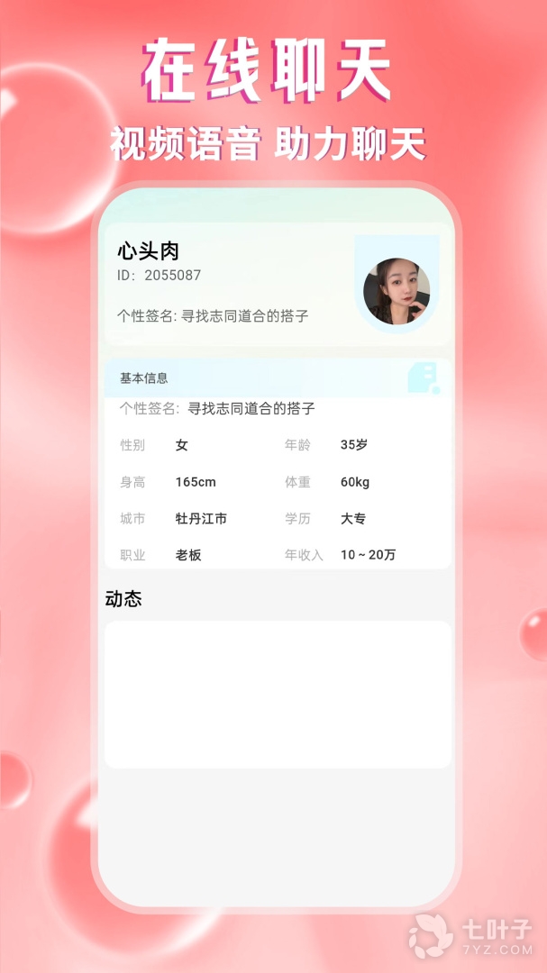 6、个人动态:用户可以发布个人动态,展示生活点滴,增加自我展示机会