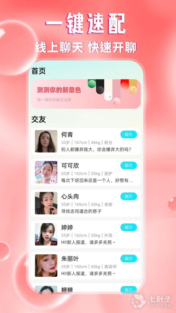 5、智能的匹配算法,为您快速推荐相互有好感的异性,搭讪聊天回复率高,平均回复等待时间不超过5秒