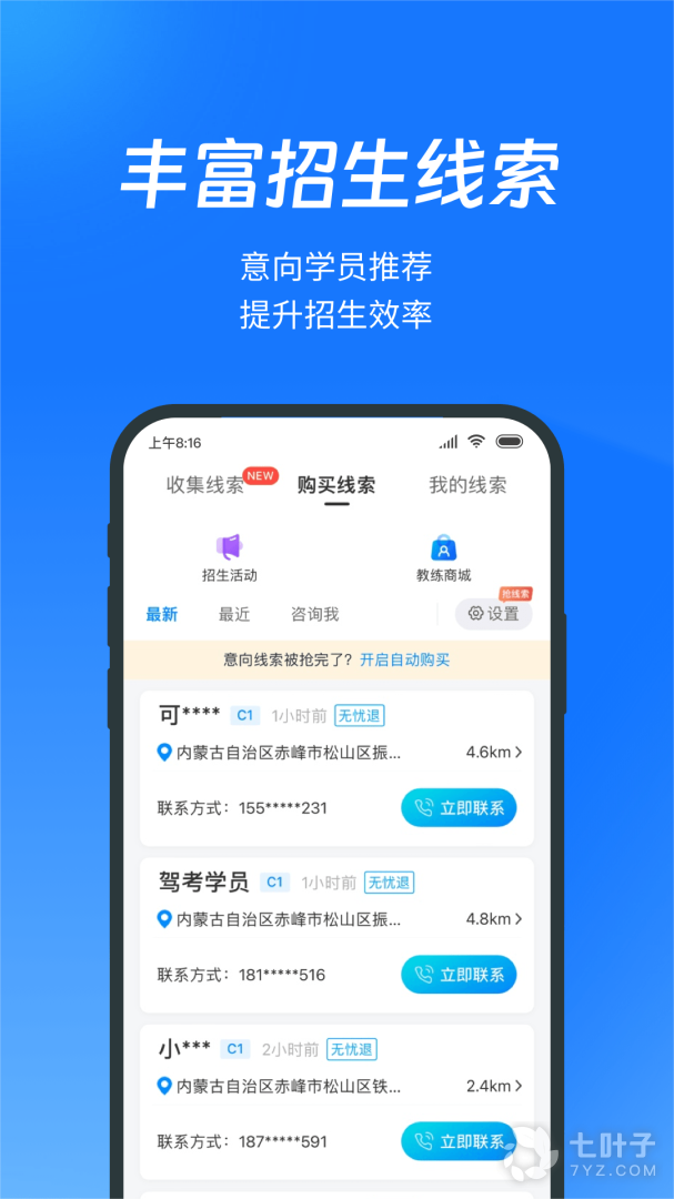 教练入驻教练宝典,可以随时收到从驾考宝典来咨询学车的学员信息,驾考宝典拥有千万学员,真正做到帮驾校解决招生的问题
