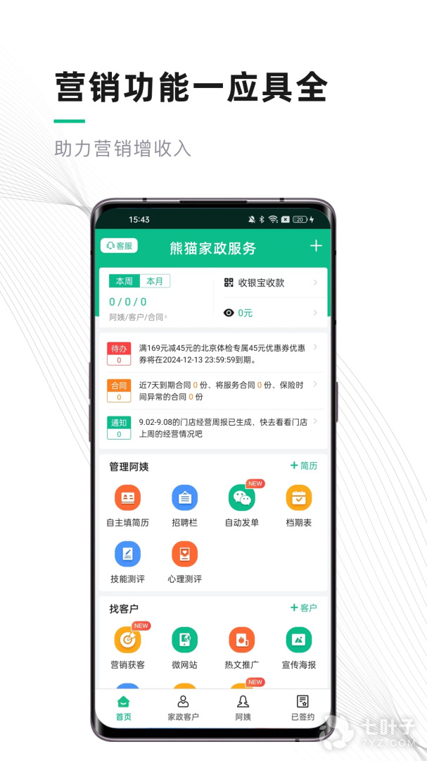 1、平台可以在线录入阿姨简历,查询阿姨信用,管理客户,管理员工等等,熊猫系统,互联网让家政更美好