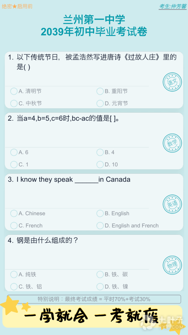 3.优化考试系统(改为一张试卷考完所有题目,不然你们又要给我寄刀片了)