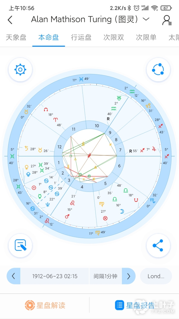 1、星盘软件:提供专业的星盘生成工具供用户免费使用,并附有详细的星盘解读和专业的星盘报告