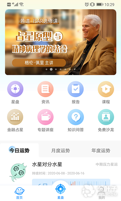 3、还能在后天播放专业课程,并根据课程内容,使用星盘工具进行占卜测试。