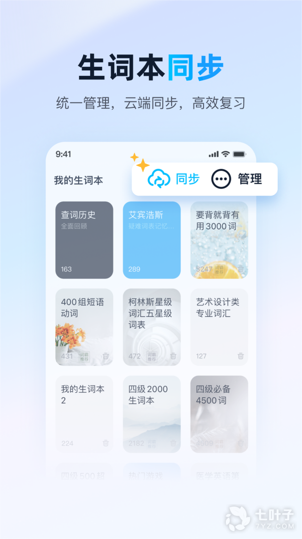 5、每个人都想过目不忘,我们不能承诺,只能让你无限接近。单词本全面升级为单词卡片,化整为零,让它们悄悄住进你心里