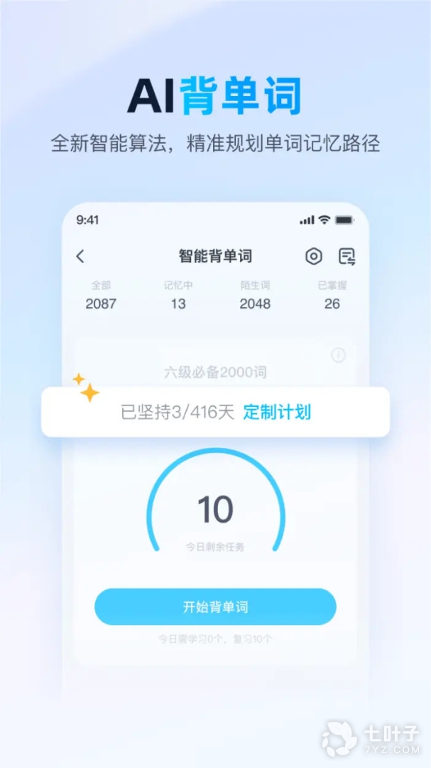 2、覆盖高中、四六级、考研、雅思、托福身份,支持个性化定制,一键同步学习计划,听说读写专项练习,智能背单词,提高记忆效率