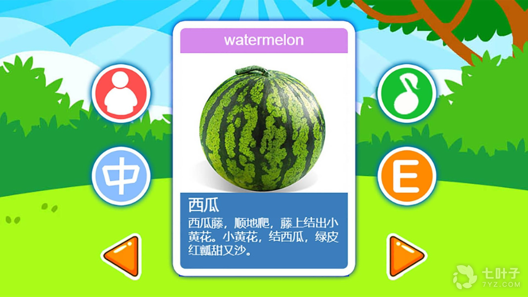 2、曾经的切水果游戏凭借着爽快的手感和优秀的画面让我们很多人乐此不疲,这个儿童益智切水果中,孩子们也可以体验到切水果的快乐,这里有各种各样鲜嫩多汁的水果,玩家要做的就是果断准确的将他们一刀两断,非常的锻炼孩子的反应能力