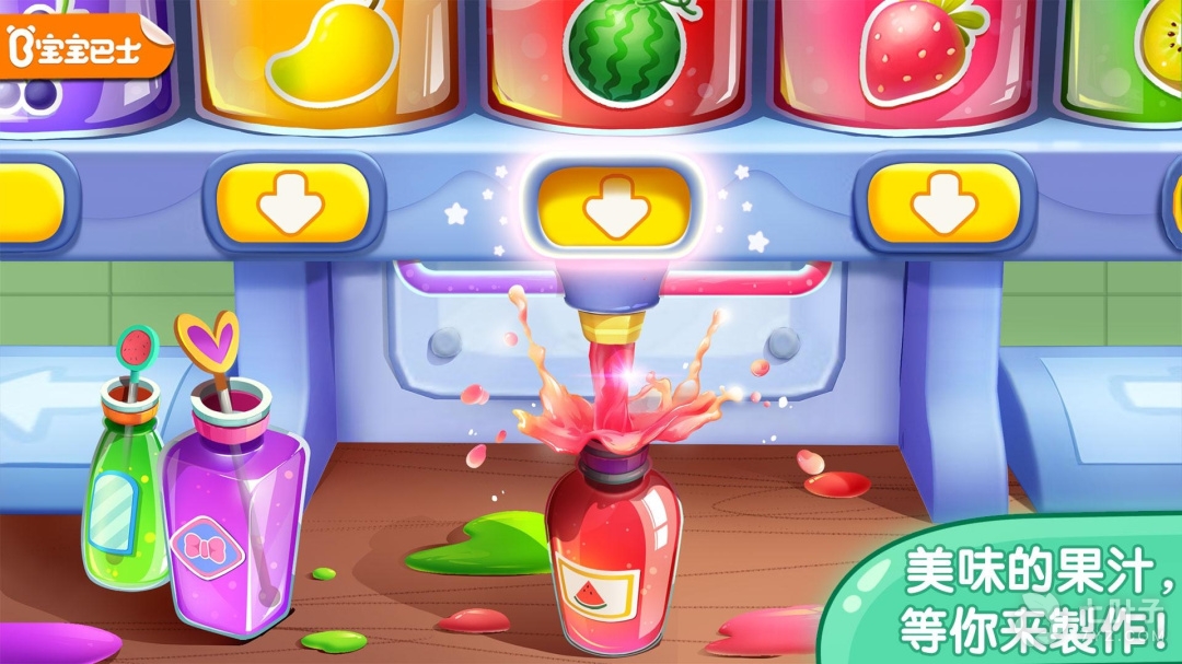1、该游戏主要特点是果汁商店,宝宝们可以通过游戏认识更多的水果,自己榨出果汁并售卖,喜欢的可以来宝宝果汁商店体验