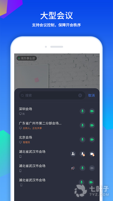 5、用户使用好视通云会议可以实现多人音视频交流、文字聊天、共享文档、共享屏幕等,会议的管理者可以控制其他参会人的各种权限,可以将会议录制成视频,对会场进行点名等