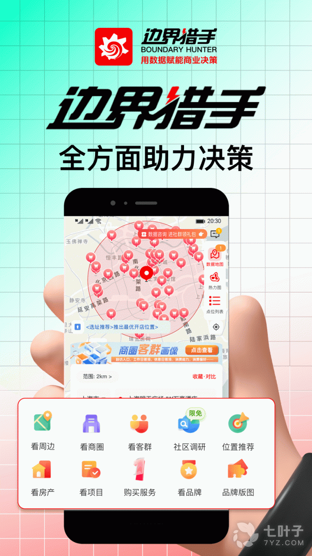 边界猎手——优化传统市场研究、选址评估的业务流程,秉持降低项目开发时间成本、节省沟通成本、集成化、智能化的理念。