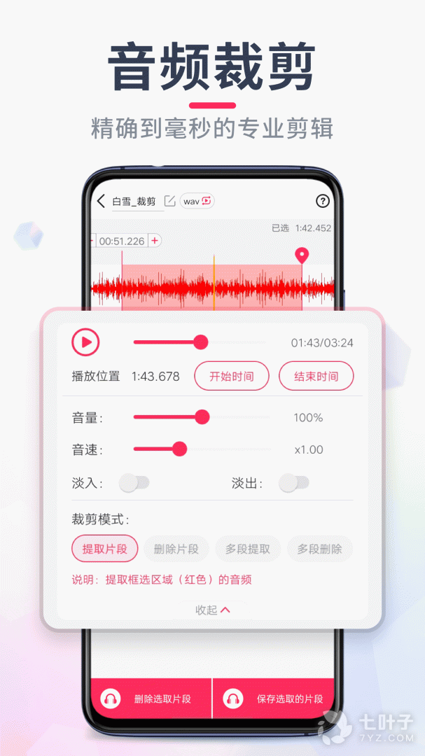 6、快速而简便的音频剪裁功能,只需简单选择时间范围即可