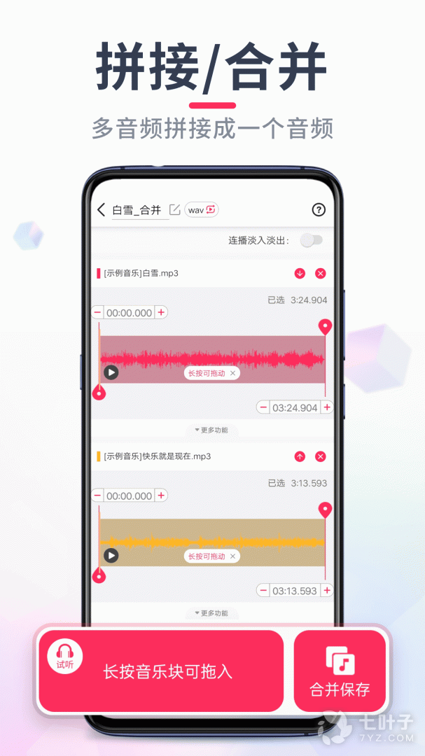 3、支持同一音乐里裁剪出多段音频,多种音频裁剪模式